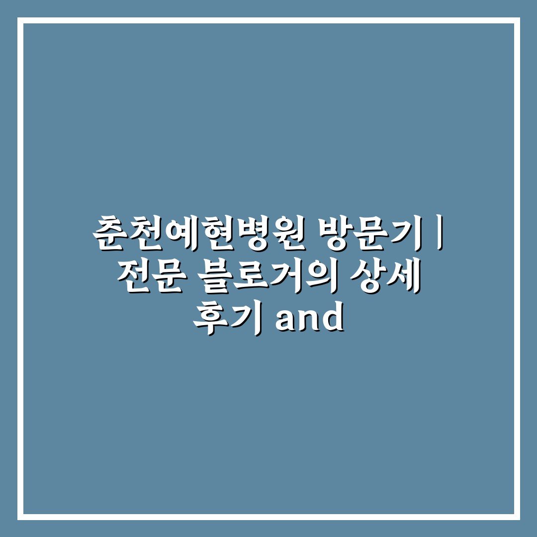 춘천예현병원 방문기 | 전문 블로거의 상세 후기 and Review – 최근 건강 검진이 필요해져서 관심을 갖게 된 곳이에요. 직접 방문해봤는데요, 강원도 춘천시 서면에 위치해 있어 접근성도 좋고 시설도 깔끔해서 기대 이상이었답니다. 친절한 서비스와 전문적인 진료 덕분에 건강 관리…