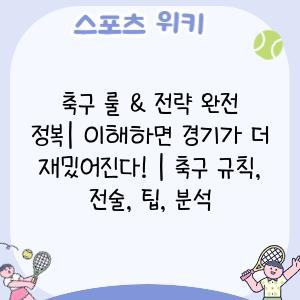 이 글에서는 기본적인 축구 규칙부터 다양한 전술, 팁, 분석까지 알려드립니다.