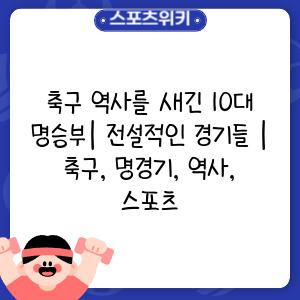 축구 역사를 새긴 10대 명승부 | 전설적인 경기들 | 축구, 명경기, 역사, 스포츠 축구는 단순한 스포츠를 넘어 전 세계인을 하나로 묶는 열정과 감동의 축제입니다. 수많은 경기들이 펼쳐지고 기억되지만, 그중에서도 역사에 길이 남을 명승부들은 우리에게 영원한 감동과 짜릿함을 선사합니다. 이 글에서는 축구 역사를 새롭게 쓴 10대 명승부를 소개합니다. 각 경기는 전설적인 선수들의 빛나는 활약, 극적인 역전 … Read more